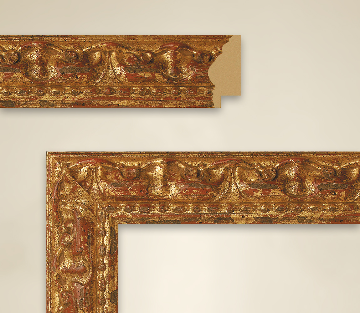 Le cadre photo Lorenza est un cadre en or classique orné d’ornements. Le cadre en bois véritable brille à travers l'application de son jeu de couleurs en or avec des éléments rouges. Et ceci sur toute sa taille, qui fait 49 millimètres de largeur et 20 millimètres de hauteur. Le cadre photo Lorenza agit comme un cadre unique sur le mur ainsi qu’en interaction avec d’autres éléments du même genre - car vous ne pouvez pas avoir assez de cadres dorés pour un amateur d’art. Lorenza s'adaptera à cela et émettra pourtant sa propre personnalité. Immédiatement après la barre d'extrémité étroite au bord extérieur suit une pièce large, qui est pleine d'ornements. Ici, le spectateur peut laisser libre cours à son imagination, qu'il s'agisse d'un Bandelwerk issu du baroque ou d'éléments floraux. Une barre plus étroite suit, montrant les maillons ronds qui se rejoignent avant que Lorenza ne se termine par une barre d'extrémité droite. Sur tous brille l'or brillant, ce qui crée des accents brun rougeâtre pour une ambiance antique. |