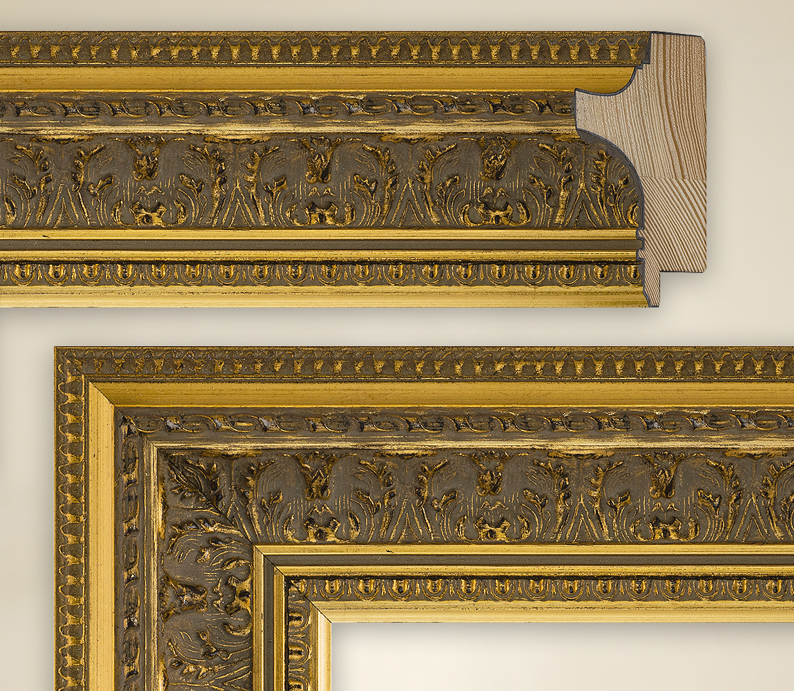 | Le cadre de peinture Nelly est impressionnant dans toutes les galeries de photos, mais aussi pour tout collectionneur privé qui apprécie les cadres sublimes pour ses tirages d'art. Avec ce modèle, la série de cadres Van Gogh présente un autre cadre doré, que les designers ont créé en une magnifique pièce en termes de couleur, forme et design avec diverses moulures. Sur une largeur totale de 79 mm, des garnitures peuvent être vues ici avec, parfois sans ornements, mais toujours astucieusement coordonnées et disposées dans un ordre à voir. Sur le bord extérieur, Nelly commence par la première barre d'ornement étroite, qui montre de petits maillons de chaîne triangulaires sur un fond brun foncé. Une dépression dorée ouvre la voie à la partie la plus haute du cadre, qui est poussée dans la pièce comme une langue carrée de 43 mm. Ici aussi, les éléments dorés sur brun deviennent leur propre ornement avant que la grande bordure principale ne repousse vers le mur. Le brun foncé prédomine ici, de sorte que les structures dorées sur celui-ci apparaissent très délicates. Les bandes étroites suivantes sont appelées or, marron et or et sont accompagnées d'une autre bordure d'ornement avant qu'une dernière bande d'or ne forme la conclusion collective. La vue d'ensemble est dominée par le brun foncé, qui, avec l'or brillant, représente un excellent ensemble. |