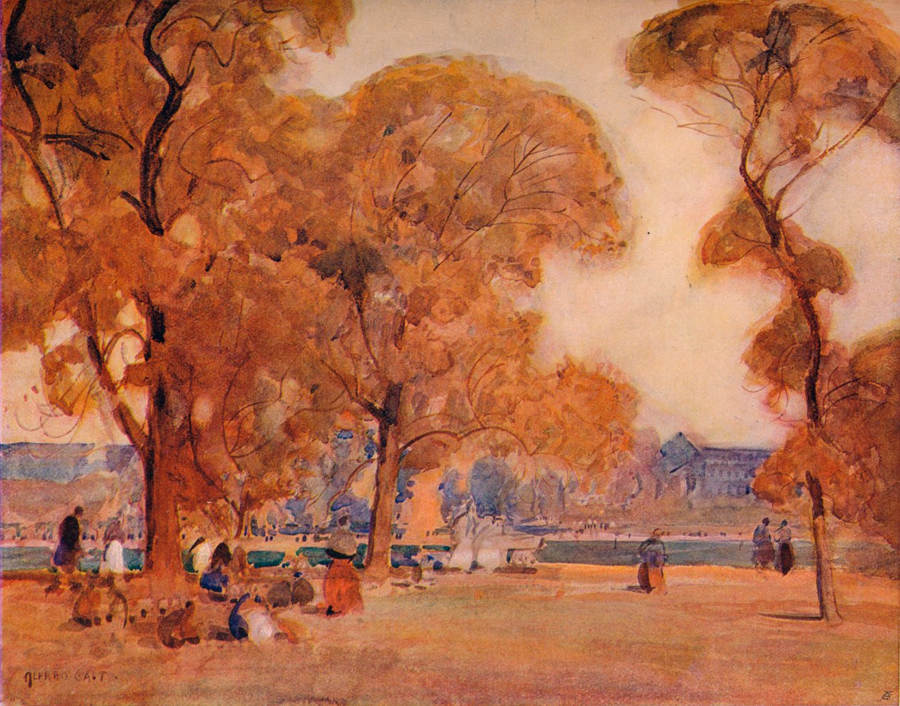 nature · extérieur · dehors · loisirs · parc · arbre · femelle · femmes · femme · les gens · enfant · enfants · marche · usine · usines · peinture · britannique · géographie · couleur · brun · lakeside · endroit · siècle · la grande-bretagne · image · dame · flânerie · rampant · tonalités · couleur · jour · 19ème siècle · personnes de fond · les années 1900 · 20ème siècle · dix-neuvième siècle · arbres · watercolour · landscape · charles · holme · alfred edward east · east · alfred edward · sir alfred edward east · sir alfred east · alfred east · charles holme · the studio publications · the studio ltd · royal institute of painters · east · alfred · east · sir alfred · The Print Collector/Heritage Images |