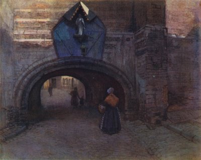 Arcade sous la Vieille Boucherie, Anvers (lithographie couleur)(Archway under the Vieille Boucherie, Antwerp (colour litho))Amedee (after) Forestier |
