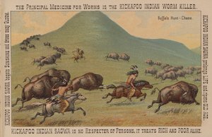 Amérindiens portant des peaux de loup blanc chassant le bison(Native Americans wearing white wolfskins hunting buffalo )American School |