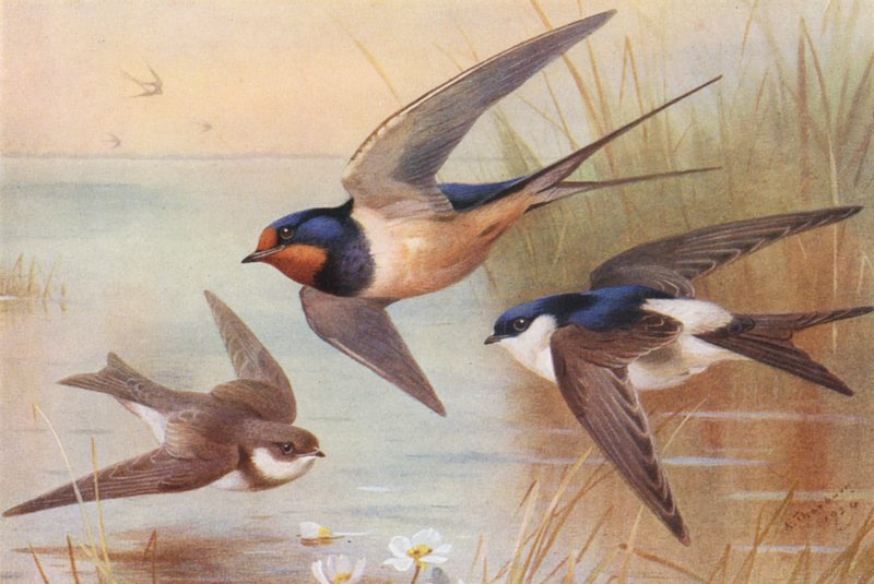 Hirondelle de rivage, Hirondelle, Martin(Sand-Martin, Swallow, Martin (colour litho))Archibald Thorburn |
