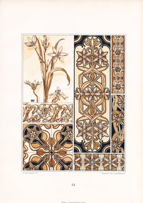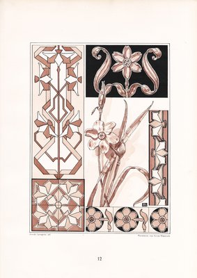 Motifs de lys stylisés dans les tons bruns (lithographie)(Stylized Lily Motifs in Brown Tones (litho))Arnold Lyongrün |