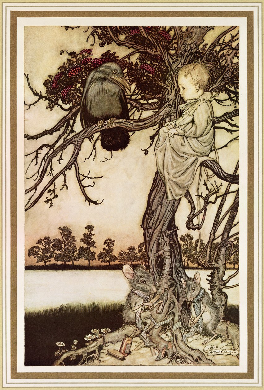 Parler au corbeau de 'Peter Pan dans les jardins de Kensington' par J.M. Barrie, 1906(Talking to the Crow from 'Peter Pan in Kensington Gardens' by J.M. Barrie, 1906)Arthur Rackham |