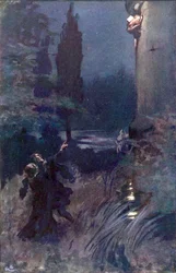 Illustration pour The Cloister and The Hearth de Charles Reade(Illustration for The Cloister and The Hearth by Charles Reade (colour litho))Byam (after) Shaw |