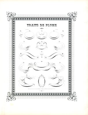 Plume calligraphique avec bordure florale (impression)(Calligraphic Pen Flourishes with Floral Border (print))Charles Derriey |