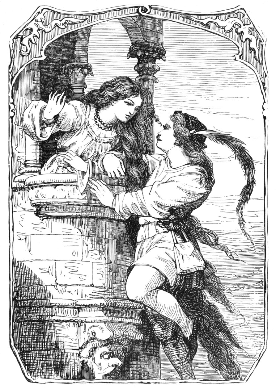femelle · femmes · femme · les gens · mâle · homme · hommes · couples · allemand · arts · pays · tour · livre · type · couleur · couleur · cheveux · endroit · siècle · fairytale · longs cheveux · littérature · dame · face à face · deux personnes · monochrome · métaphore · caractère fictif · noir et blanc · noir et blanc · les années 1900 · 20ème siècle · portrait · grimm · brothers grimm · brothers · george routledge sons limited · grimms household stories · edward henry wehnert · wehnert · edward henry · edward wehnert · rapunzel · The Print Collector/Heritage Images |