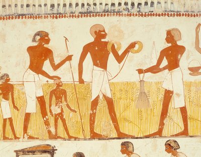 (A servant measures a field in the presence of the farmer and his wife …)Egyptian 18th Dynasty |