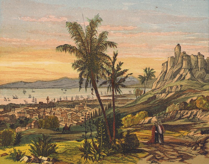Paysage en Terre Sainte(Landscape in the Holy Land (colour litho))English School |