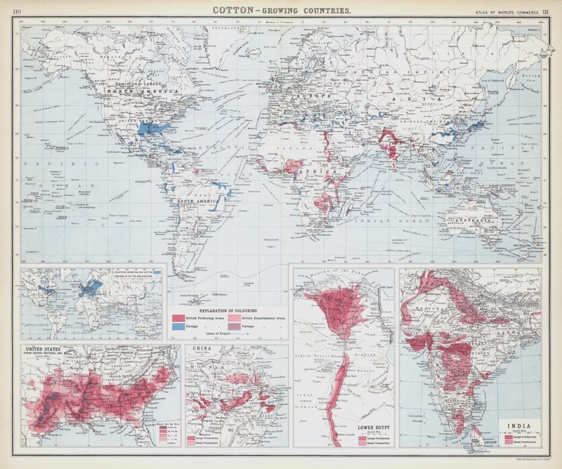 Pays producteurs de coton(Cotton, growing countries (colour litho))English School |