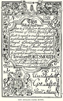 Monnaie de papier de la Nouvelle-Angleterre (gravure)(New England paper money (engraving))English School |