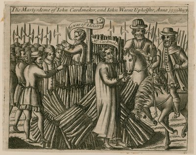 Le martyre de John Cardmaker et John Warne, tapissier, 30 mai 1555 (gravure)(The martyrdom of John Cardmaker and John Warne, Upholsterer, 30 May 1555 (engraving))English School |