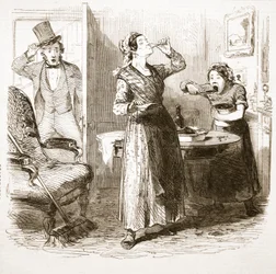 Croquis pittoresques de Londres : La maison de pension, de The Illustrated London News, 1849(Picturesque Sketches of London: The Lodging House, from The Illustrated London News, 1849 )English School |