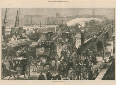Scène de rue animée sur le pont de Londres(A busy street scene on London Bridge )English School |
