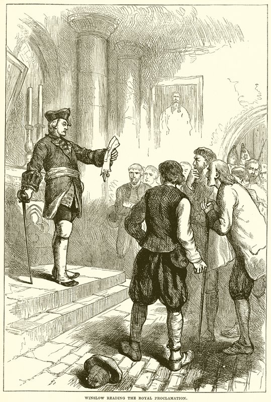 Winslow lisant la proclamation royale(Winslow reading the Royal Proclamation )English School |