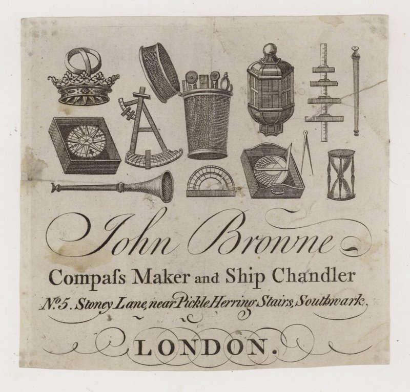 Chandeliers de navires, John Browne, carte de visite(Ship chandlers, John Browne, trade card )English School |