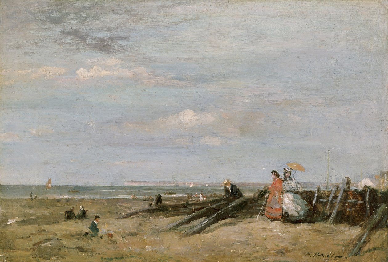 Scène de plage à Trouville, années 1860(A Beach Scene at Trouville, 1860s (oil on card laid on panel))Eugene Louis Boudin |