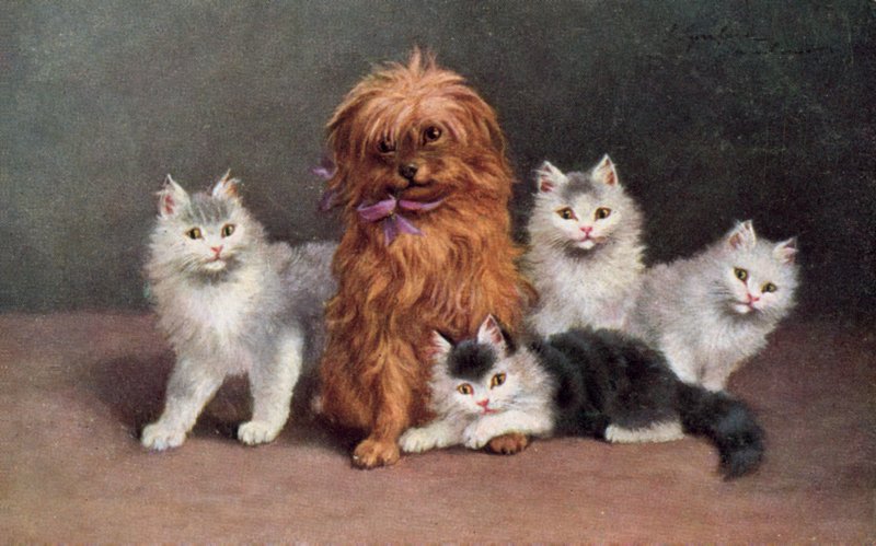 Carte postale de chat (lithographie couleur)(Cat postcard (colour litho))European School |