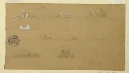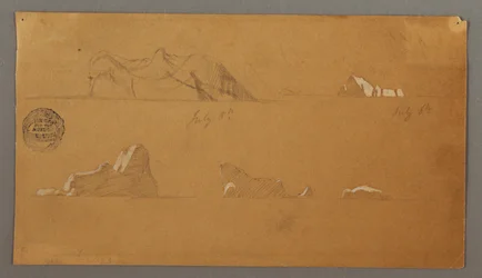 Dessin, icebergs flottants, 5 juillet 1859(Drawing, Floating Icebergs, July 5, 1859)Frederic Edwin Church |