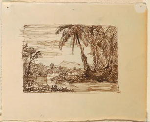Dessin, paysage imaginaire avec, vers 1870-73(Drawing, Imaginary Landscape with, ca. 1870–73)Frederic Edwin Church |