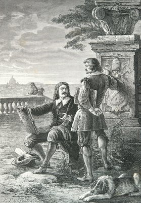 Nicolas Poussin (1594-1665), peintre français, avec Claude Gellée, dit le Lorrain (1600-1682) à Rome (Trinité des Monts) gravure de « L'histoire de France racontée à mes petits-enfants » par François Guizot - 1872-1876(Nicolas Poussin (1594-1665), French painter, with Claude Gellee, dit le Lorrain (1600-1682) in Rome (Trinita dei Monti) engraving from “” L'histoire de France racontee a mes grandenfants””” - by Francois Guizot - 1872-1876)French School |