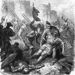 Bataille contre Henri IV du Saint-Empire romain germanique le 14 octobre(In the battle against Henry IV of the Holy Germanic Empire on October 14)French School |