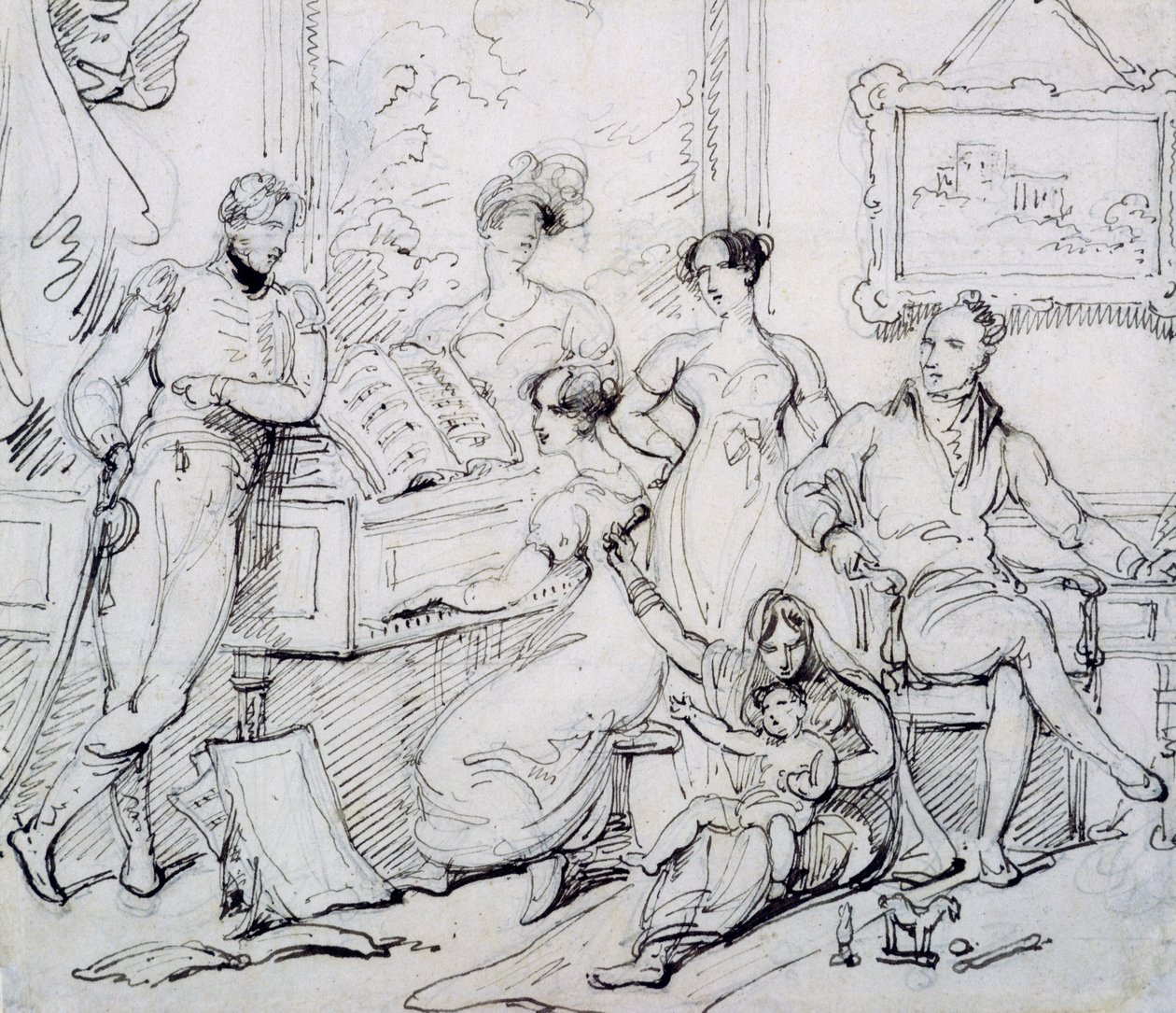 Un Groupe Familial Autour d'un Piano(A Family Group Around a Piano (pen und brown ink with graphite on paper))George Chinnery |