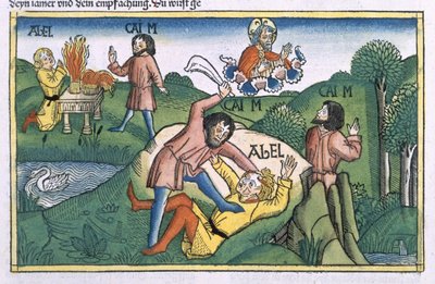 (Cain and Abel, scene in the Bible of Nuremberg written in German (print))German School |