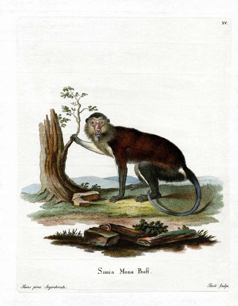 Singe Mona(Mona Monkey (coloured engraving))German School |