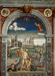 Fresque de Giovanni Maria Falconetto, Salle du Zodiaque, Palazzo D'Arco, Mantoue, Italie(Fresco by Giovanni Maria Falconetto (1468-1535), Hall of Zodiac, Palazzo D'Arco, Mantua (UNESCO World Heritage List, 2008), Italy)Giovanni Maria Falconetto |