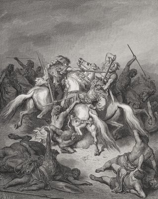 Abishai sauve la vie de David, Samuel 2:17, illustration tirée de 'La Sainte Bible' de Dore, gravée par Hurel.(Abishai Saves the Life of David, Samuel 2:17, illustration from Dore's 'The Holy Bible', engraved by Hurel)Gustave (after) Dore |