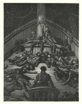 Le Marin contemple ses compagnons morts et se lamente sur la malédiction de sa survie alors que tous ses compagnons marins sont morts, scène tirée de "The Rime of the Ancient Mariner" de S.T. Coleridge, publié par Harper Brothers, New York.(The Mariner gazes on his dead companions and laments the curse of his survival while all his fellow sailors have died, scene from 'The Rime of the Ancient Mariner' by S.T. Coleridge, published by Harper & Brothers, New York)Gustave Dore |