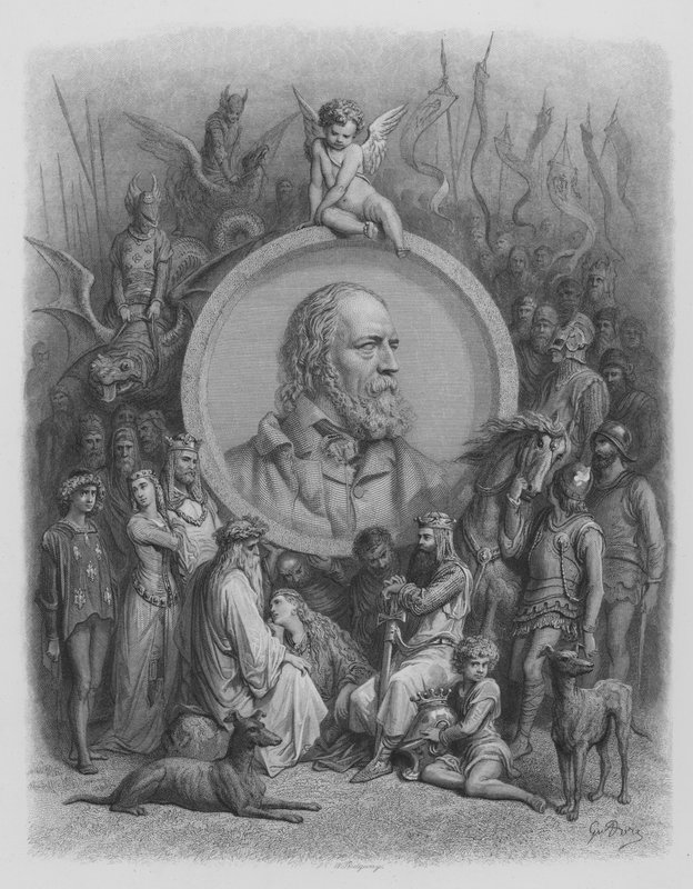 Frontispice, Portrait de Tennyson et personnages des Idylles(Frontispiece, Portrait of Tennyson and Characters from the Idylls )Gustave after Dore |