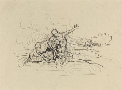 | Centaure emportant une femme (plume et encre noire avec lavis sur crayon sur papier vergé)(Centaur Carrying Off a Woman (pen and black ink with wash over crayon on laid paper))Honore Daumier |