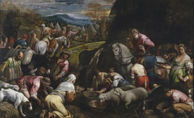 Les Israélites buvant l'eau qui jaillit miraculeusement du rocher (peinture sur toile)(The Israelites drinking the water which springs miraculously from the rock (painting on canvas))Jacopo (1510-92) Bassano |
