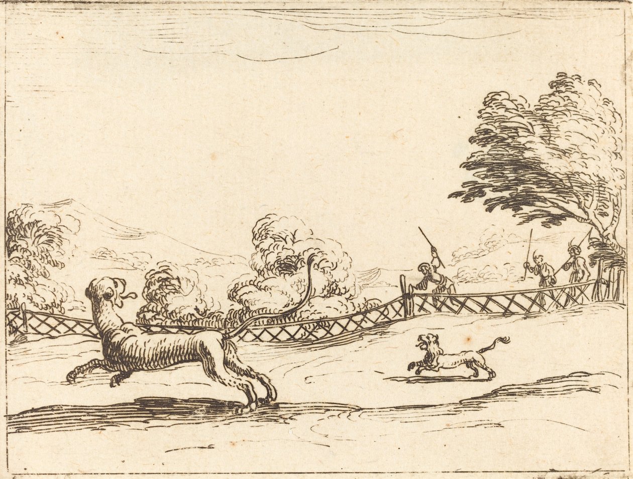 Lionne et lionceau poursuivis par des chasseurs(Lioness and Cub Pursued by Hunters)Jacques Callot |