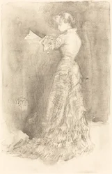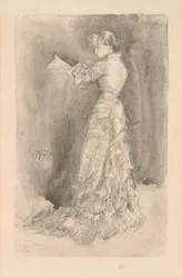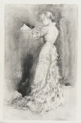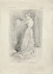 vue de cÔtÉ · se tenir · les gens · intérieur · jour · préparation · profil · robe · siècle · toilette · concept · impression · pleine longueur · une personne · monochrome · préparations · publication · 19ème siècle · noir et blanc · noir et blanc · les années 1900 · 20ème siècle · lithographie · dix-neuvième siècle · lithography · lithograph · portrait · james abbott mcneill whistler · james mcneill whistler · j.a mcneill whistler · ja mcneill whistler · mortimer l · mortimer l menpes · menpes · mortimer menpes · whistler · james abbott mcneill · whistler · james mcneill · james mcneil whistler · james abbot mcneill whistler · mortimer luddington menpes · adam and charles black · black · adam and charles · whistler as i knew him · lithotint · The Print Collector/Heritage Images