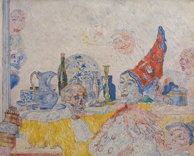 Pierrot et squelette en robe jaune(Pierrot and Skeleton in a Yellow Robe)James Ensor |