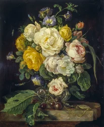 Baroque : Nature morte de pivoines, cerises et une montre à gousset(Baroque : Nature morte de pivoines, cerises et une montre a gousset - Still life with peonies, cherries and a pocket watch par Heem, Jan Davidsz. de (1606-1684))Jan Davidsz de Heem |