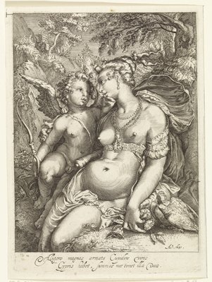 Vénus et Amour(Venus en Amor)Jan Saenredam(after print by),Anonymous(print maker),Hendrick Goltzius(after design by) |