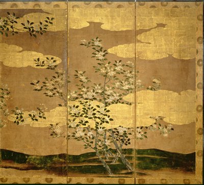Fleurs de camélias(Flowers of Camellias (pen und ink, colour, gold paper on panel) (see 216565))Japanese School |