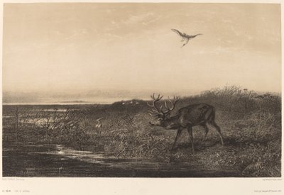 Le Soir. Cerf et Hérons(Le Soir. Cerf et Herons. )Karl Bodmer |