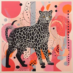Cette image a été créée avec l'aide d'une IA générative. 2023 · Digital Art - Computermade 3d - midjourney - Photoshop · ID de la peinture: 1476003 rose et noir avec des points et des formes, dans le style de Milton Glaser, rouge clair et gris foncé, Gary Hume, couleurs vives, hurufiyya, couleurs vives, lignes fortes, portraits cubistes