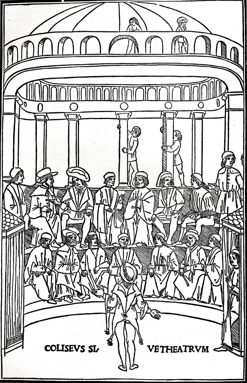 dehors · bâtiment · bâtiments · les gens · mâle · garçon · garçons · groupe · homme · hommes · divertissement · assistances · jour · type · théâtre · magasin · étape · exécution · interprète · siècle · salle · action · acteur · monochrome · actrice · adressage · thespian · noir et blanc · noir et blanc · 16ème siècle · les années 10 · 20ème siècle · seizième siècle · the connoisseur · portrait · woodcut · comoediae · plantus · lazarus de soardi · soardi · lazarus de · titus maccius plautus · plautus · titus maccius · titus maccius · bernardus saracenus · saracenus · bernardus · giovanni pietro valla · valla · giovanni pietro · The Print Collector/Heritage Images |