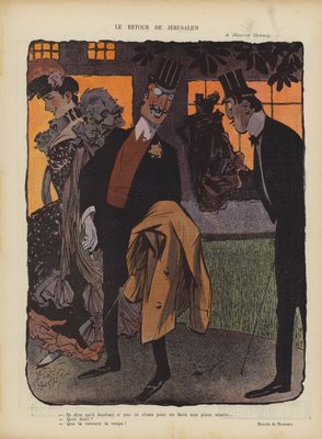 Publicité pour Une Nuit à l Fops en manteau à queues, gilet, pantalon serré et bas blancs. Personnes en costume de fantaisie et masques derrière eux. Au bal de l Illustration de H. G. Ibels (1867-1936) dans Le Rire, 27/02/09 - Le crépuscule des anciens - Théâtre, troisième âge, vie des riches - Spectateurs Illustration pour Le Rire Illustration pour Le Rire Illustration pour Le Rire Le dernier des lions du boulevard Gens à la mode à la danse en plein air, Bal Mabille. Femmes en crinolines larges et capes en fourrure, homme en haut-de-forme, veste et pantalon rayé. La danse du soir au Jardin Mabille, Avenue Montaigne, se tenait de 1844 à 1875. Les jardins de Mabille L Vieilles chansons L Illustration de couverture pour Deux Anglais demandent maladroitement des directions à un couple français glamour en mauvais français, 1903 Femme en cape doublée de fourrure et manchon sur une large crinoline, avec une autre femme en tenue d Illustration de Miklos Vadasz (1884-1927) dans Le Rire, 07/03/08 - Le contrat de location - Prostitution, architecture intérieure Illustration de Xavier Gose (1876-1915) dans Le Lire, 06/02/09 - Bons amis - Amour, Mode, Fleurs Un couple anglais en France moqué pour leur sens de la mode étrange, 1903 Illustration pour Le Rire Illustration for Le Rire (colour litho) "Une soirée. Théâtre de Vaudeville" / J. Hassall / Affiche, 1897 Illustration de Léonce Burret (1865-1915) dans Le Sourire, no. 4, 23/01/13 - Les petites - Nocturne, Prostitution, Casseroles en papier, Lampadaire, Fourrure Illustration pour Le Rire Une Journée aux Courses, illustration de Illustration pour Le Rire L Fantasio Couverture de Le Rire Dandysme : - Marcel Petitpain m