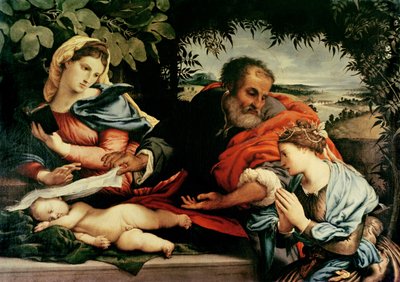La Sainte Famille avec Sainte Catherine d'Alexandrie (peinture sur toile)(The Holy Family with Saint Catherine of Alexandria (painting on canvas))Lorenzo Lotto |