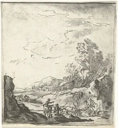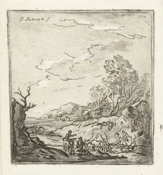 Paysage avec cavalier et berger(Landschap met ruiter en herder)Louis Bernard Coclers(print maker),Johannes Janson(after design by) |