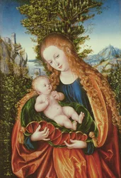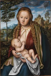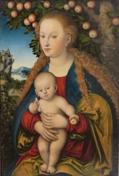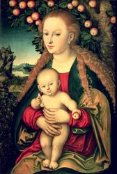 La Vierge et l'Enfant sous un pommier(The Virgin and Child under an Apple Tree, 1520-26 (oil on canvas transferred from p tr om anel)) 99 : Jesus Christ; baby; lap; apples; landscape; background; symbolism; Eve; sin; symbolic; infant; rur)Lucas Cranach the Elder |