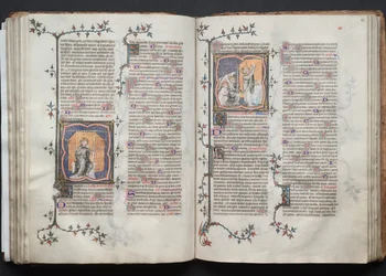 français · la france · paris · encre · atelier · 14ème siècle · the cleveland museum of art · heritage art · bound volume · bound volume · workshop · and · and gold on vellum · tempera · and gold on vellum · blind-tooled leather binding · blind-tooled leather binding · master of the boqueteaux french · master of the boqueteaux · Heritage Art/Heritage Images