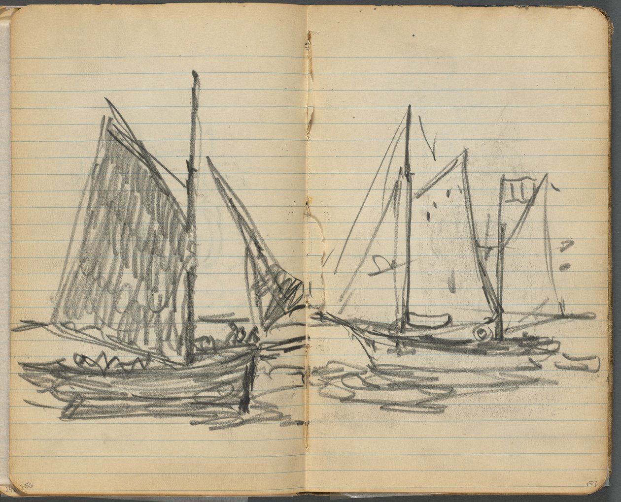 Carnet de croquis, pages 156 et 157 : Vue de voiliers(Sketchbook, page 156 & 157: View of Sailboats )Maurice Prendergast |